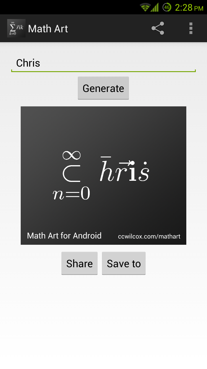 Examples The image above gives you an example on how “Chris (the author)” is converted into mathematical art.